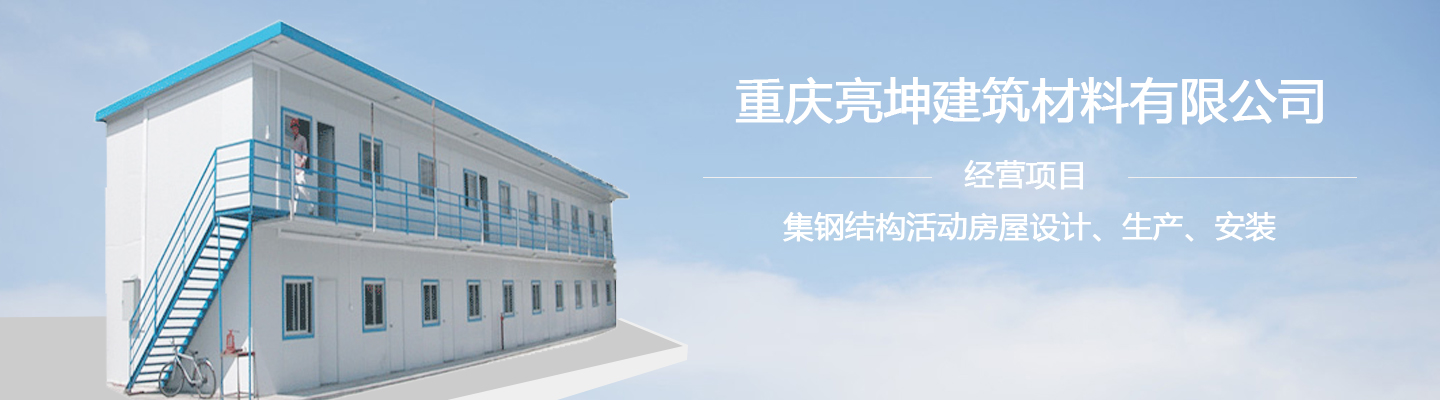 重慶亮坤建筑材料有限公司是集鋼結(jié)構(gòu)活動房屋設計、生產(chǎn)、安裝為一體的專業(yè)公司,年生產(chǎn)安裝活動房能力達30萬平方米。公司業(yè)務覆蓋西部地區(qū),西南地區(qū)最具有實力的活動板房制造廠家之一。 亮坤活動房始終堅持發(fā)揚“以客戶為中心以服務未導向”的企業(yè)精神,秉承“誠信為本、同心圖治、為實創(chuàng)新、追求卓越”的經(jīng)營理念,遵循“誠信經(jīng)營、服務社會”的企業(yè)宗旨,建立健全、現(xiàn)代化企業(yè)體制和質(zhì)量保證體系。在全國被政府機關評為“重點推廣產(chǎn)品”消費者信得過唱片,質(zhì)量萬里行,全國質(zhì)量服務誠信單位等。 亮坤...
